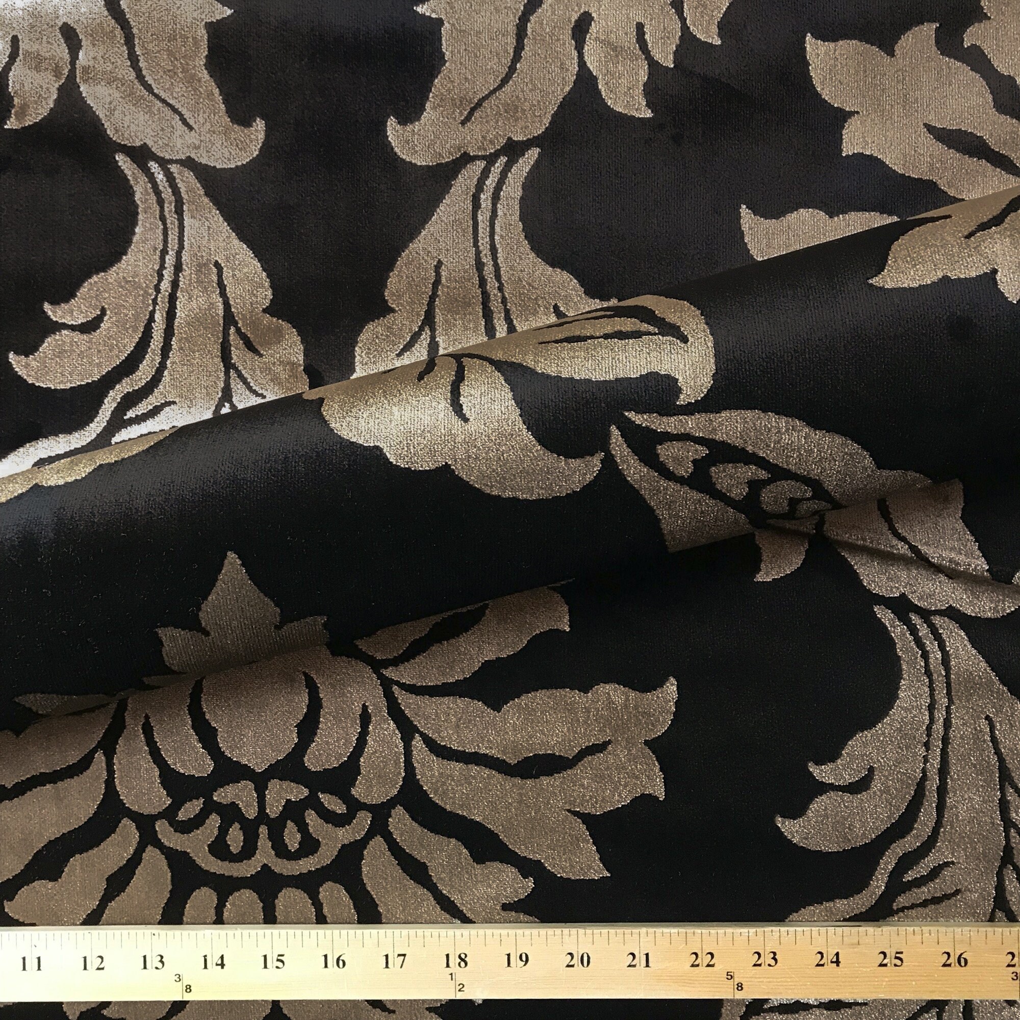 Black And Gold Regal Floral Velvet Upholstery Fabric 54 Etsy De