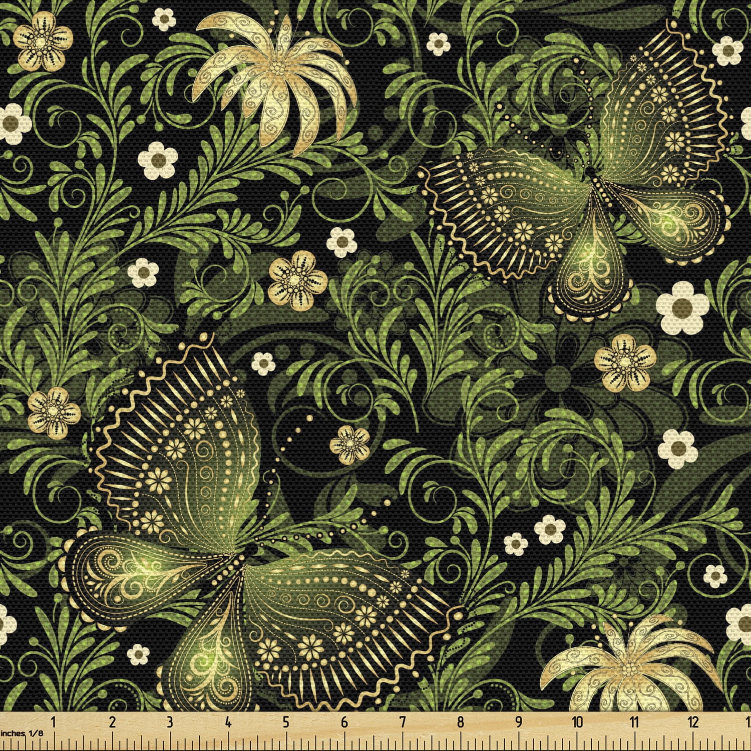 Sage Sofa Upholstery Fabric By The Yard Spring Inspired Ornaments Butterflies Little Blossoms Swirled Leaves Vintage Decorative Fabric For Diy Home Accents 3 Yards Yellow Black Green By Ambesonne Walmart Com