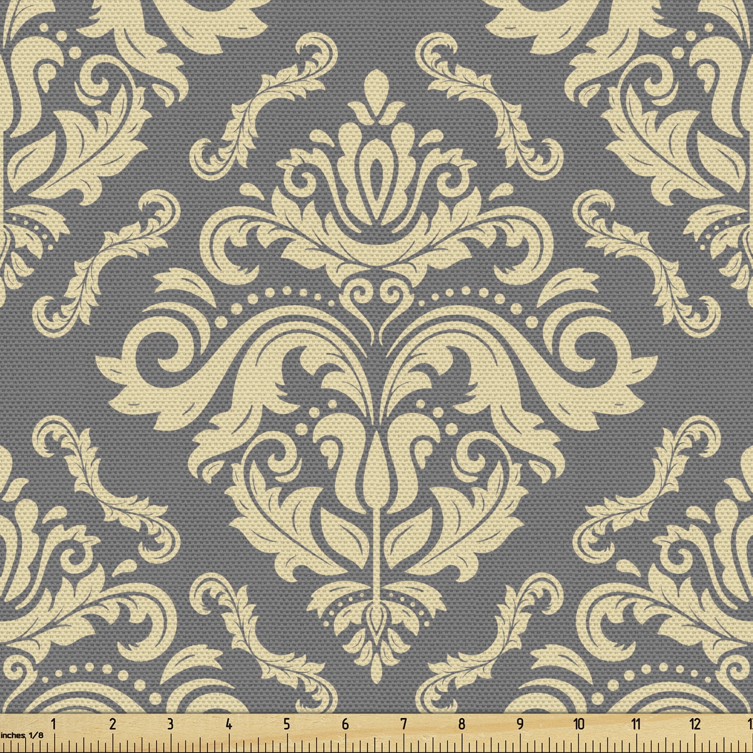 Damask Fabric By The Yard Vintage Classic Royal Curvy Leaves Repetitive Graphic In Monochrome Tones Decorative Upholstery Fabric For Sofas And Home Accents Beige And Dimgray By Ambesonne Walmart Com