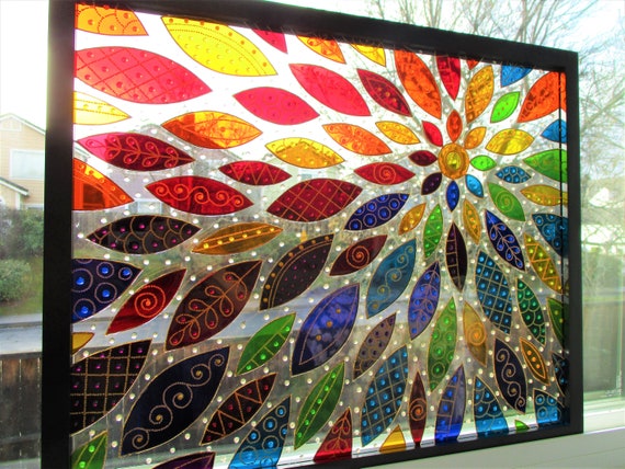 Abstract Flower 22x18 Glass Painting Glass Art Stained Glass Etsy Uk