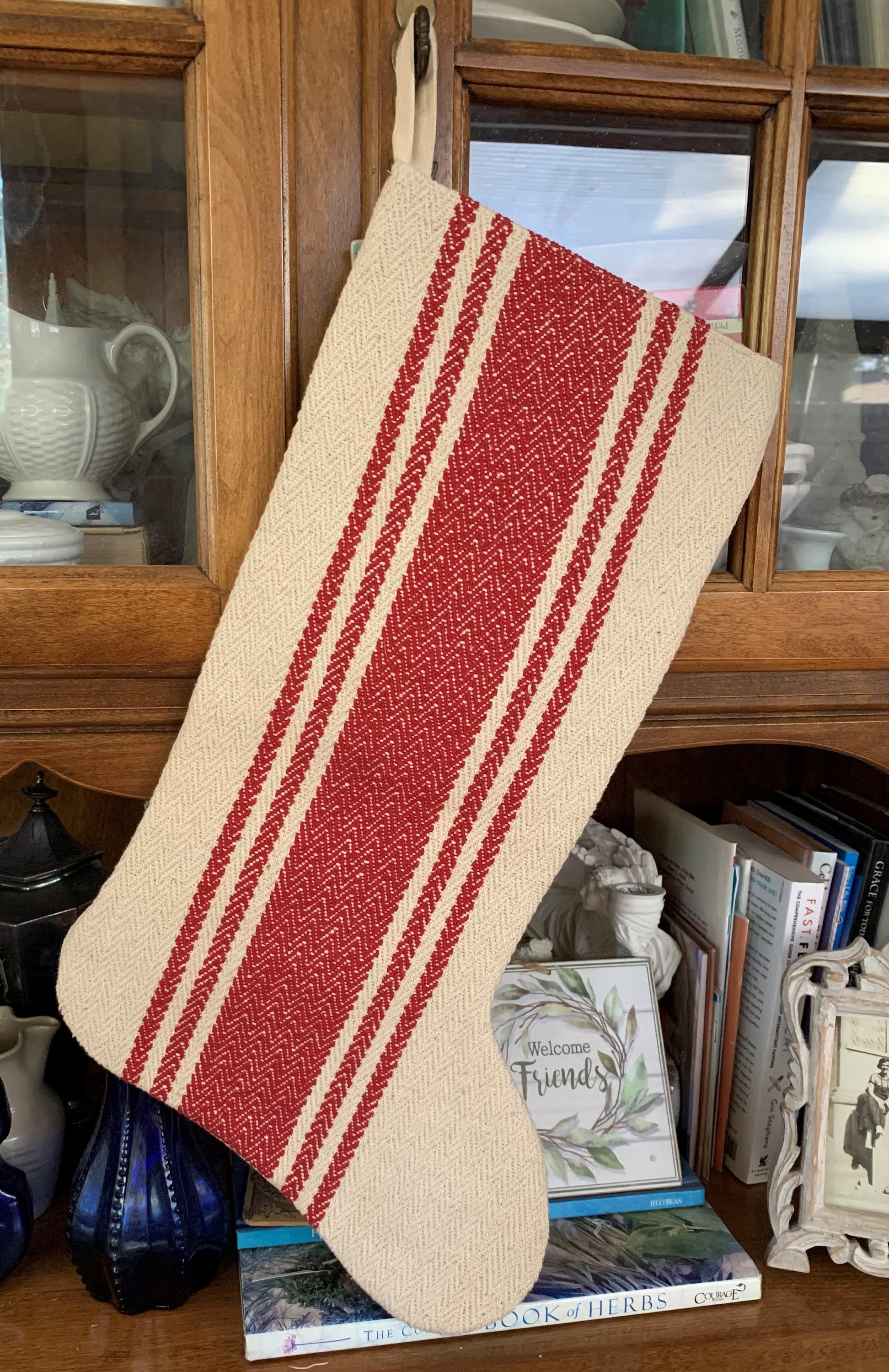 Large Woven Farmhouse Christmas Stocking From Sleigh Hill Etsy