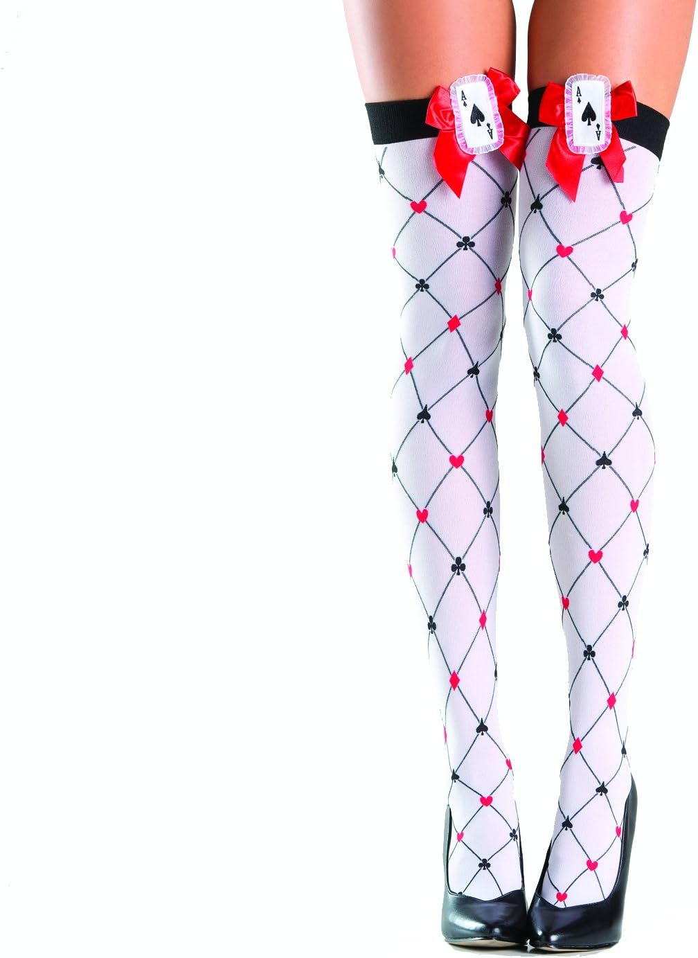 Amazon Com Be Wicked Women S Diamond Design Thigh High With Playing Card Detail White Red One Size Clothing Shoes Jewelry