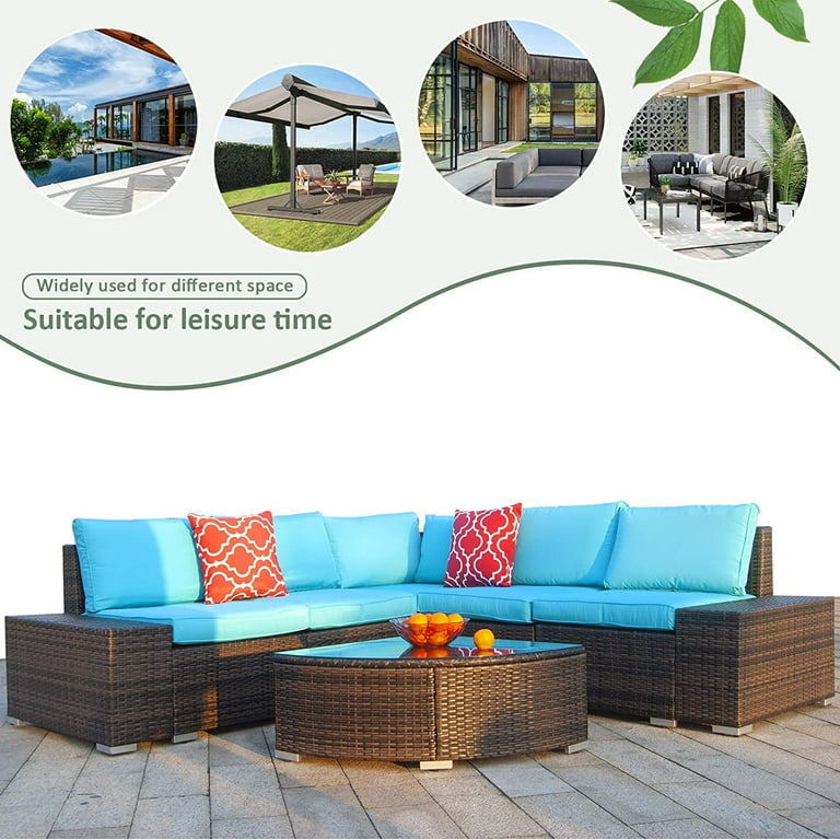 Polar Aurora 6 Pieces Patio Furniture Set Modular Outdoor Sectional Rattan Wicker Outdoor Sofa Conversation Couch With Glass Coffee Table Blue Brown Walmart Com
